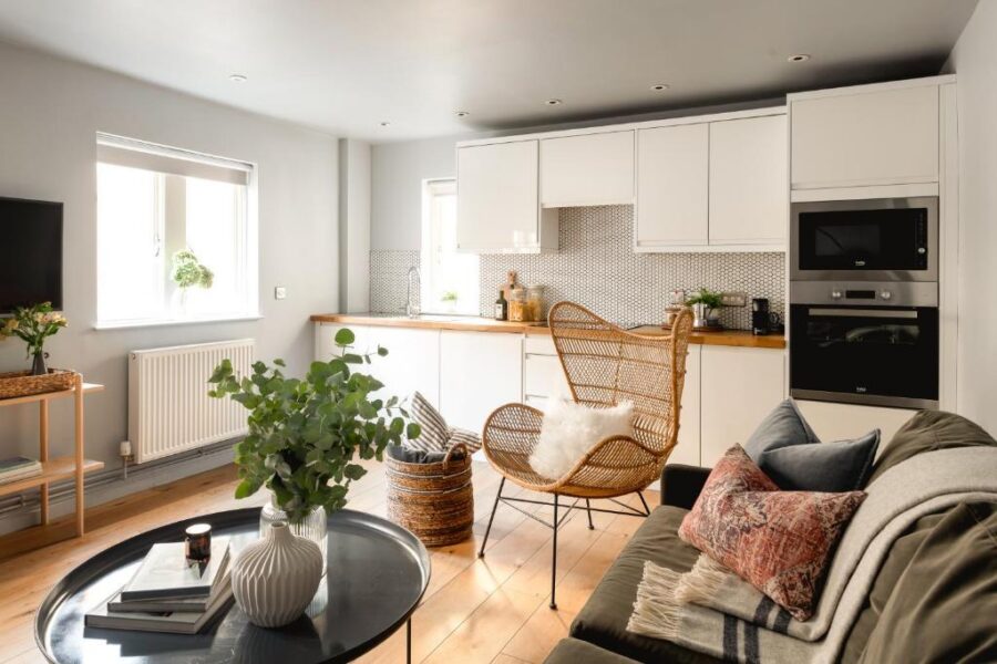 Overlooking the original courtyard garden, the apartments combine historic surroundings with comfortable, modern living. Each flat includes a bedroom, kitchen, living space and bathroom, making them ideal for holidays, weekend visits, business trips or longer stays.